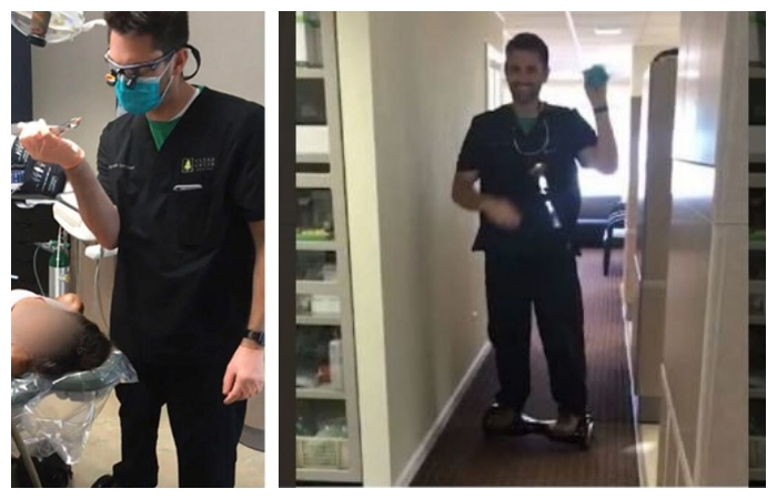 Videoda Lookhart’ın, dişi çektikten sonra ellerini zaferle başının üstüne kaldırıp elektrikli kaykayında dönerek koridora çıktığı görülüyor.