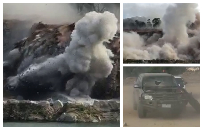 NSW’in güneyinde bir taşocağında patlatılan kayalar, yüzlerce metre öteye fırladı, keyif için uygulamayı seyreden 12 kişi ölümden kılpayı kurtuldu, araçlar kayalara hedef oldu.