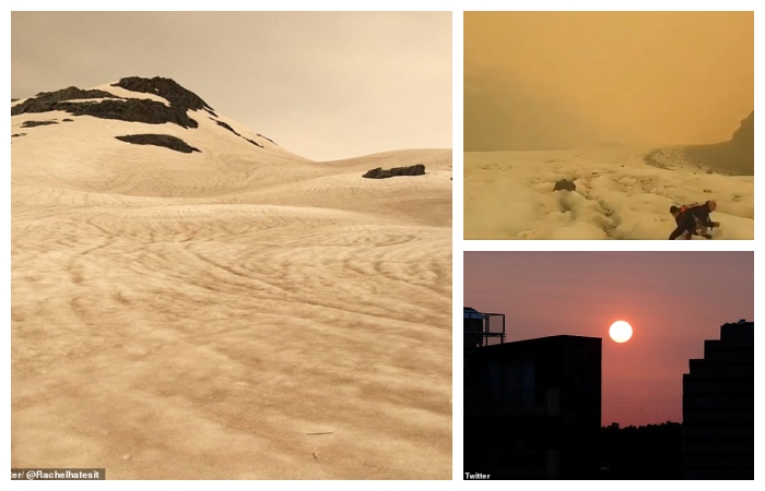 Yeni Zelanda’da Franz Josef ve Tasman buzullarında karın yangın dumanından dolayı açık kahverengiye dönüştüğü fotoğraflara yansıdı.
