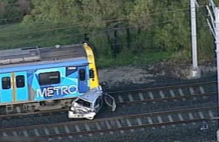 Melbourne’de meydana gelen tren kazasında raylarda duran iki otomobile tren çarptı, otomobillerden biri aracın altında 150 metre sürüklendi.