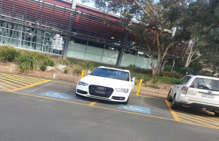 Melbourne’deki Eltham Leisure Centre’da beyaz bir otomobilin 2 engelli park yerini birden işgal etmesi, Facebook’ta böylesi park facialarını kınamak için ayrılan sayfaya yüklendi.