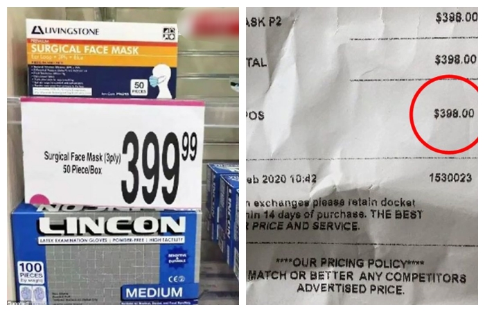 Sydney’deki bir başka eczane 50’lik cerrahi maskeler için 399 dolar, Adelaide’daki Terry White Chemmart bir kutu 10’lu P2 maskeleri için 700 dolar istiyor.
