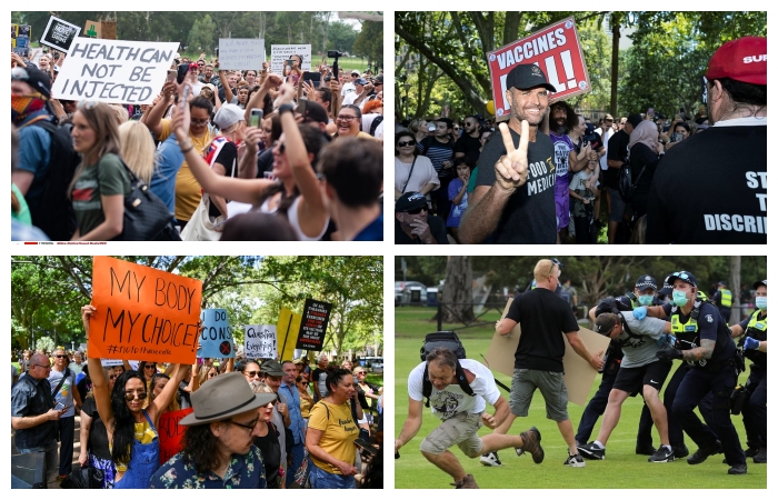 Avustralya’da COVID aşılarının başlamasına günler kala protestocular sesini yükseltiyor, polisle çatışmaya varan eylemler düzenliyor.
