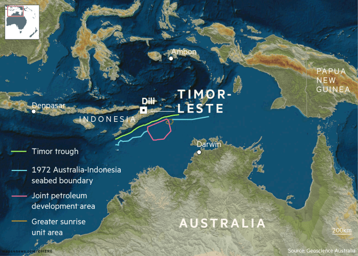 Doğu Timor’un Avustralya ile Timor Denizi’ndeki Münhasır Ekonomik Bölgelerinin (MEB) sınırını çizen anlaşmayla Timor Denizi’ndeki “Greater Sunrise” (Büyük Gündoğumu) doğal gaz sahasındaki karbon kaynakların iki ülke tarafından ortaklaşa işletilmesi mümkün olacak.