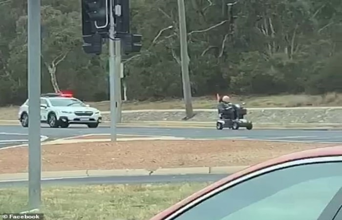 Engelli motosikletine binmiş yaşlı adam önde, polis aracı arkada, dünyanın en yavaş polis takibi kameraya yansıdı ve görenleri güldürdü.