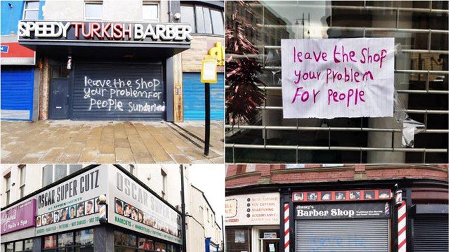 İngiltere’nin Sunderland kentinde yaşayan Türklere ait iş yerlerine ırkçı tehdit şoku yaşanıyor… Yerel basına konuşan yetkililer özellikle şehirdeki Türk berberlerin dükkanlarının saldırıya uğradığını açıkladı.