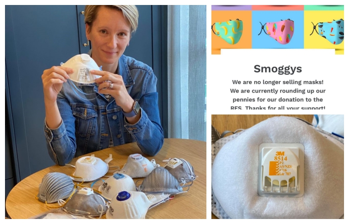 Kırsal İtfaiyesi için bağış toplayan şirketin ilanındaki maskelerin P2 sertifika numarası taşımadığını hemen fark eden Cole, Smoggys’in sahiplerini uyardı.