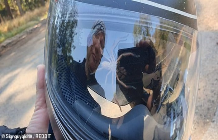 Adam, “Eşim örümcek kaskın vizörüne geçmeden yanağında bir şey hissetti. Örümcek en az yarım saattir kaskın içindeymiş” yazdı.