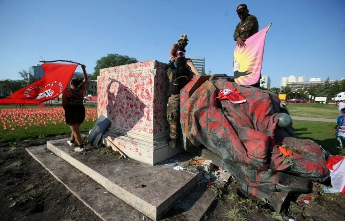 Winnipeg kentindeki Manitoba Yasama Meclisi’nde toplanan yüzlerce protestocu, “Her Çocuk Önemlidir” mitingi sırasında “bir zamanlar çocuktuk” sloganları atarak Kraliçe Victoria ve Kraliçe II. Elizabeth’e ait heykeller de dahil olmak üzere Meclis’te bulunan birkaç heykeli yıktı.
