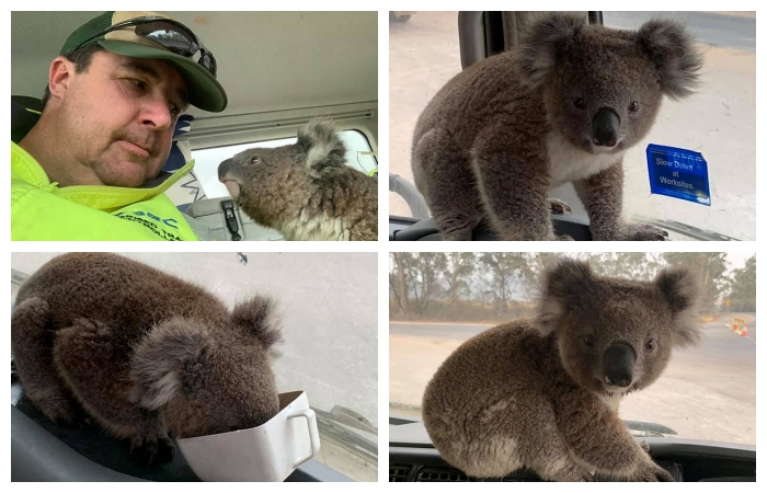 Damian Campbell-Davys adlı itfaiyeci, Pazar günü NSW-Souther Tablelands’deki Nerriga kasabasında itfaiye araçlarını suyla dolduruyordu. İtfaiyeci o sırada yanmış ormanlık araziden çıkan koalayla karşılaştı.