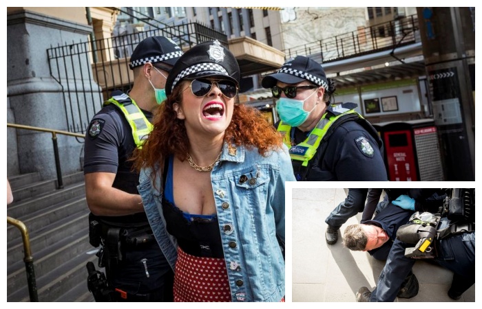 Flinders Street Station dışındaki gösteride 25 kadar kişi bulunuyordu, bazıları defalarca uyarılmalarına karşın maske takmayı reddettikleri için gözaltına alındı.