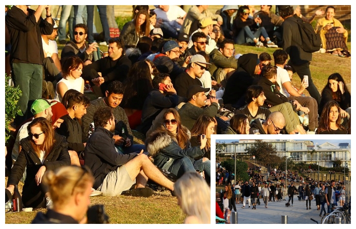 Sydney’deki kalabalıkların büyük gruplar halinde oturdukları, bir araya geldikleri, sosyal mesafe kuralına aldırış etmedikleri görülüyordu.