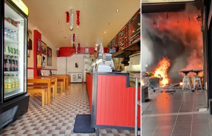 Sydney’in güneybatısındaki Earlwood’da bir pizzacıda meydana gelen patlama sonrasında yangın çıktı, bina yandı.