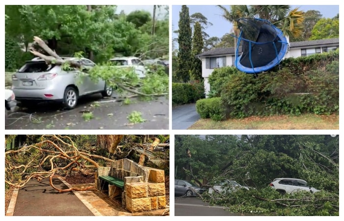 NSW’in farklı kesimlerinde yıkıcı fırtına etkili oldu, ağaçlar yıkıldı, otomobiller zarar gördü, trombolinler havada uçtu.