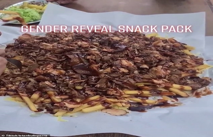 Restoranın şefleri ilginç uygulamayı Tik Tok’ta paylaştı, video “Bugün özel bir şey yapıyoruz. Bugün bir cinsiyet açıklama var. Bu kişiler atıştırmalık paketiyle bunu istedi” sözleriyle başlıyor.