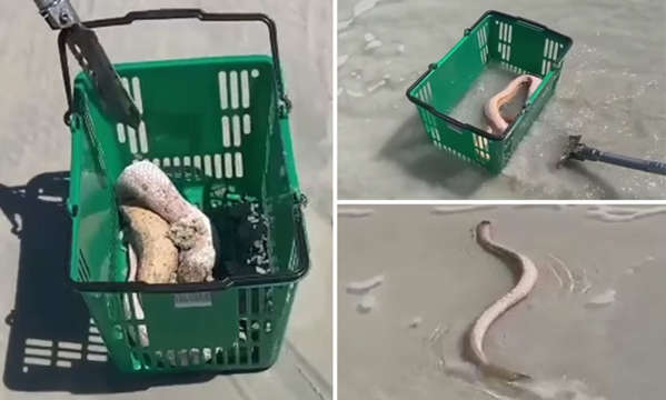 Korkusuz bir adam, Woolworths alışveriş sepetinin yardımıyla son derece zehirli bir deniz yılanını güneşte yanmaktan kurtardı. NewsFlare tarafından paylaşılan videoda,…