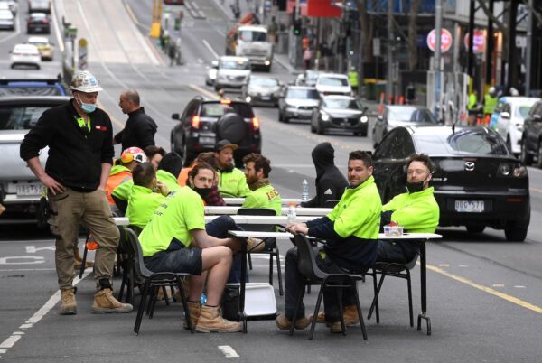 İnşaat işçileri çay molası kısıtlamalarını protesto etmek için Melbourne caddelerini kapattı