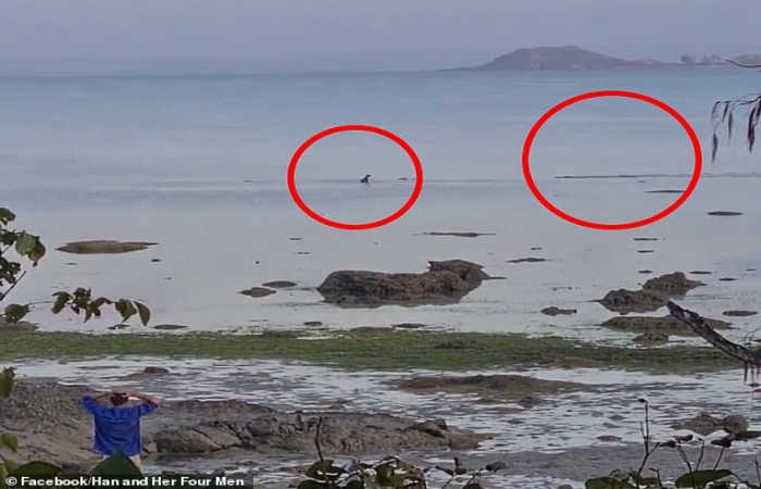 Avustralya kıyılarında sık sık yaşanan köpekbalığı korkusu yetmezmiş gibi, bu kez de kıyıya yakın yüzen bir köpek, aç bir timsaha…