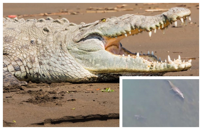 VİDEO HABER – Dev timsah, boğa köpekbalığının gözünü korkuttu