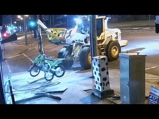 Queensland eyaletinde, bir kişi çalıntı olduğu belirtilen iş makinasıyla bir mağazanın cam vitrininden girerek motosiklet çaldı.