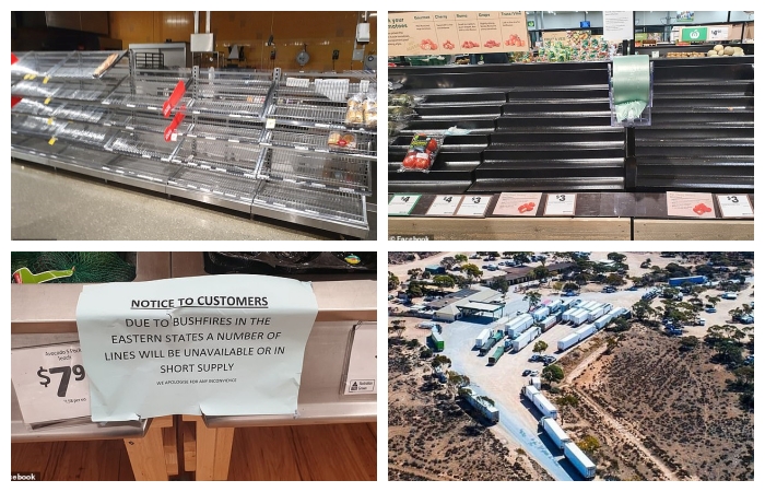 Orman yangınları Batı Avustralya’ya giden tek yolu kesince, süpermarketlerde ve McDonald’s’ta yiyecek kalmadı.