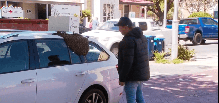 Adelaide’deki yol kenarında bir araç arıların akınına uğradı.